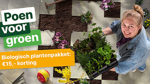 Wip een aantal grijze tuintegels eruit, zet biologische planten erin en geniet van een koele, kleurrijke tuin. Koop nu jouw gifvrije plantenpakket met € 15 korting (bij besteding van minimaal € 25). Bezoek een van de 4 deelnemende tuincentra. Let op: op=op!